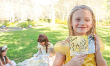 She is from a "tale as old as time" and although she loves to read, she will make her story come to life at your event without the help of a book! Her dress is a custom dyed vibrant buttery yellow and has hand placed Swarovski crystals that create a sparkle that you must see in person! She brings many fun props and sings several memorable songs throughout her story time! Depending on the length of time you choose to book and the number of kids you have attending, she can also face paint! She will proclaim your birthday child the official Princess of the Day and lead everyone in singing "Happy Birthday." Before she returns to her castle she will pose for photo ops and will give each child an autographed photo to keep! Click here for Prices or Book Now